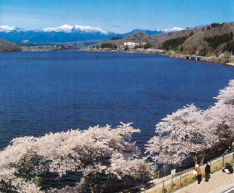 釜房湖周辺は、中間に半島を持つことで二つに分かれた奥行きの広い形状をなしており、周囲の影が四季折々に美しく映え、湖畔から見る蔵王連峰の遠望は素晴らしいの一言に尽きます。景観、自然環境に恵まれ、都市部からの交通の便も良いことから、国営公園の条件に適合しているとして、「みちのく杜の湖畔公園」として認定され、町内のみならず地域観光のシンボルとなっています。
