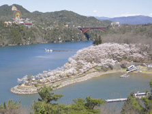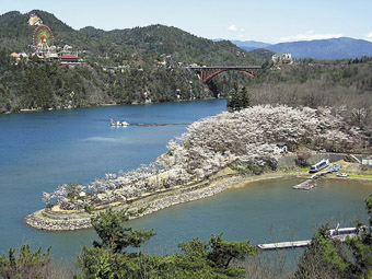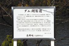 このダムの完成により、上流約10km周辺に景勝地「恵那峡」が誕生しました。 恵那峡には豊かな自然が広がり、春の桜、秋の紅葉スポットなどとして多くの観光客に親しまれています。 周辺には天然温泉が引かれたホテルをはじめ多くの宿泊施設があり、景色を眺めながらゆっくり滞在するには最適です。 県内にある同水系の阿木川ダム(阿木川湖)とともに、ダム湖百選に認定されています。 市内には美濃十六宿で、もっとも繁栄したといわれる大井宿、日本三大山城の一つで女城主で知られる岩村城址と、岩村歴史の町並み (国選定重要伝統的建造物群保存地区)、大正時代の風情を残す日本大正村など多くの観光地があります。