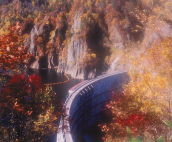 | 豊かな木々に囲まれた豊平峡ダム。 |