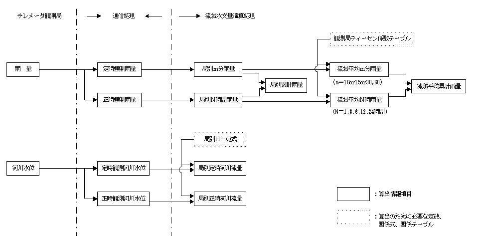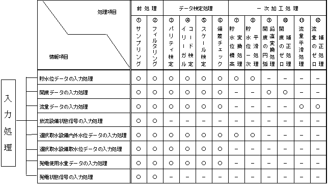 | 水 文状態監視 | コンピュータが監視し通報す る。人間は通報を受けて対応 |