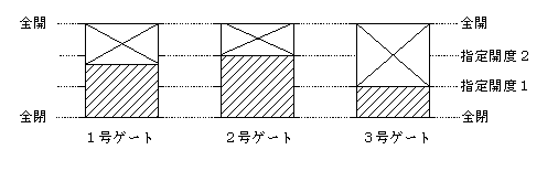 | ゲー ト操作方式 | 半自動操作(洪水吐ゲート)、 自動操作(利水バルブ、取水設備) |