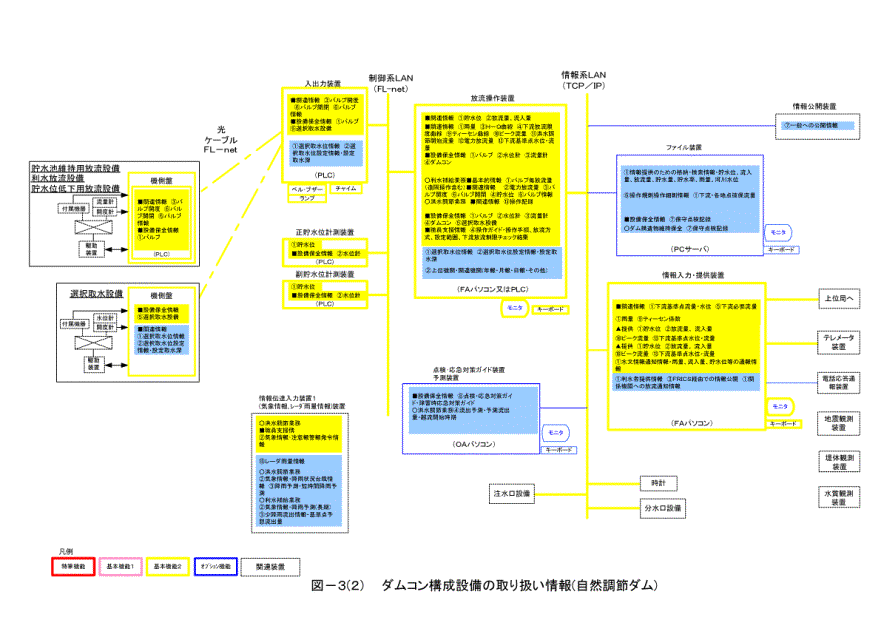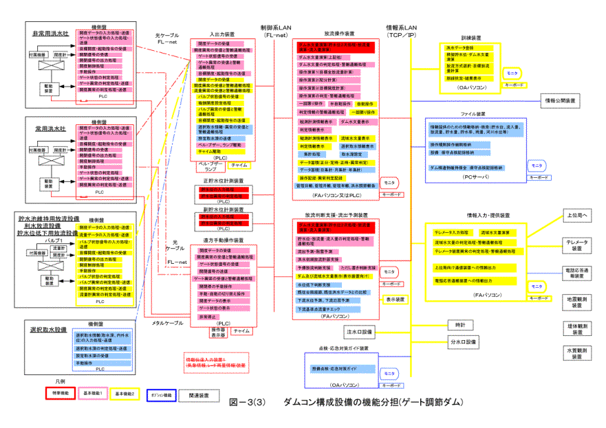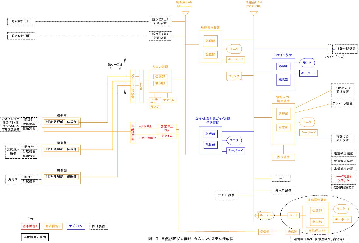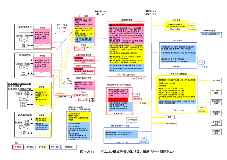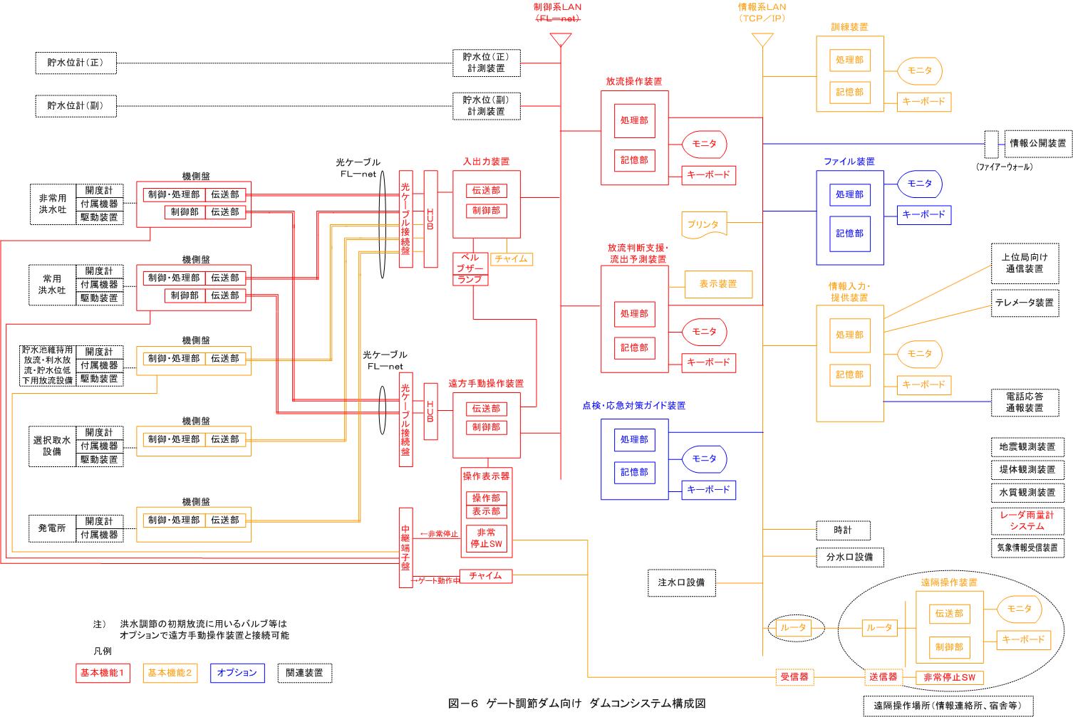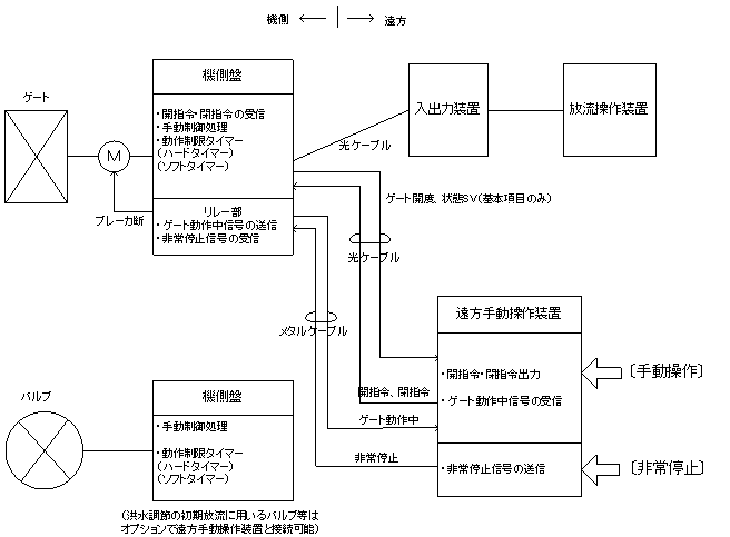 プ機能を具備させるものとする。操作系については、遠方手動操作装置をFL-netにて機側盤に直結させ、遠方手動による洪水調節操作の継続が可能な