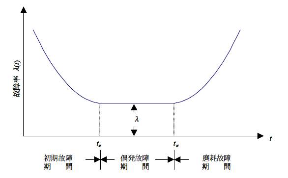 大量の生 産部品では、その統計値から実績や実機 での性能確認で、ある程度予測が可能である。また、部品の使用が意図されるのは、偶発故障期間だけであって、この期間の長さを寿命という。