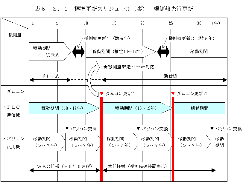 先行で更新済みの場合において、後追いでダムコンの更新を行う場合を想定し、その更新スケジュールを表6−3.1に示す。