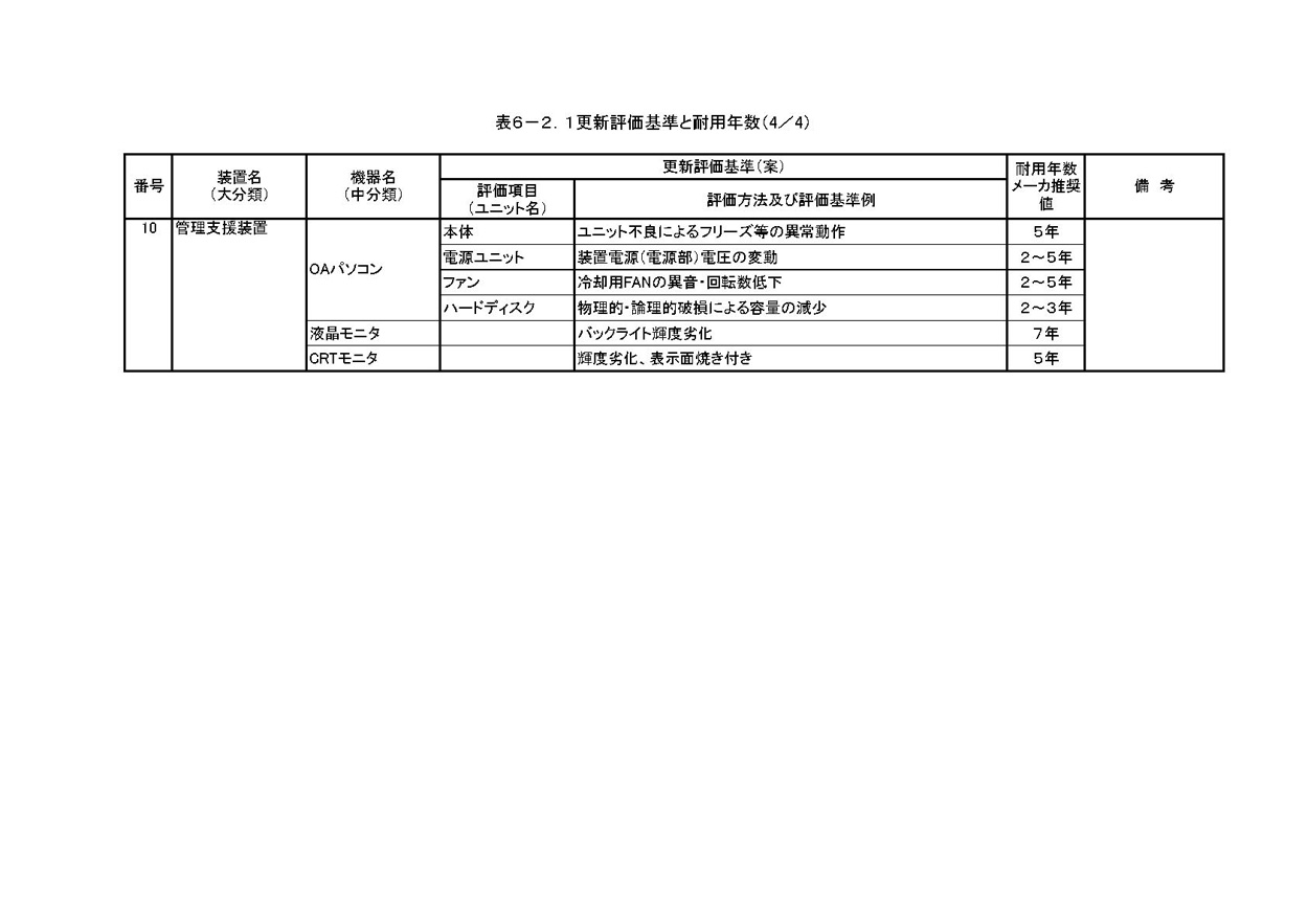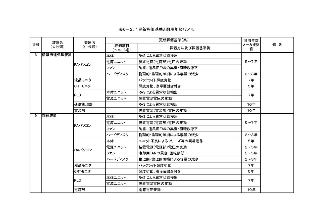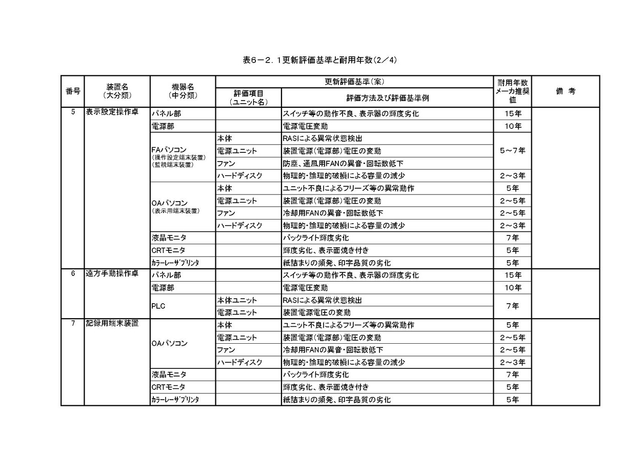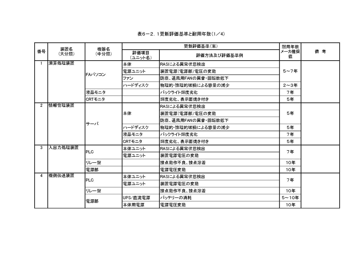 1)機器 劣化状況の把握方法と更新基準
